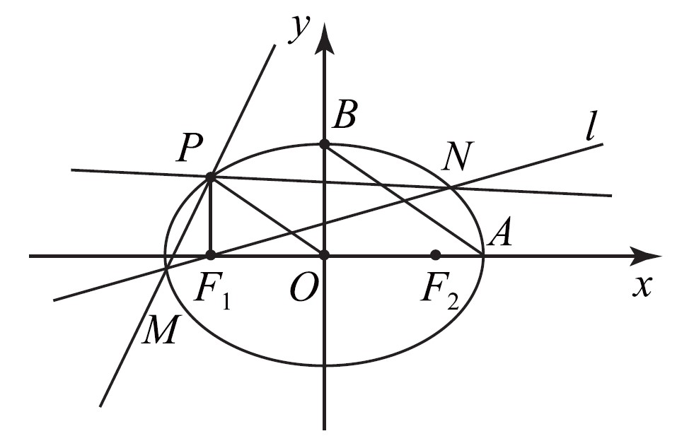 如图所示,过椭圆\(C:\dfrac{x^{2}}{a^{2}}+\dfrac{y^{2}}{b^{2}}=1\)\((a>b\geq0)\)上一点\(P\)作\(x\)轴的垂线,垂足为\(F_{1}\),已知\(F_{1}\),\(F_{2}\)分别为椭圆\(C\)的左、右焦点,\(A\),\(B\)分别是椭圆\(C\)的右顶点、上顶点,且\(AB\mathop{//}OP\),\(\vert F_{2}A\vert=\sqrt{2}-1\)。