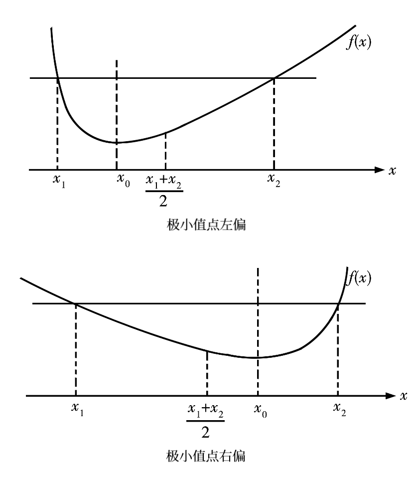 为了讨论问题的方便,不妨假设区间\(I\)上的可导函数\(f(x)\)满足\(f(x_{1})=f(x_{2}) (x_{1} < x_{2})\),且在区间\((x_{1}, x_{2})\)内只有一个极小值点\(x_{0}\),即当\(x \in (x_{1}, x_{0})\)时,有\(f^{\prime}(x) < 0\),当\(x \in (x_{0}, x_{2})\)时,有\(f^{\prime}(x) > 0\)。于是,判断极值点左偏移还是右偏移,即比较\(x_{0}\)与\(\dfrac{x_{1} + x_{2}}{2}\)的大小关系。